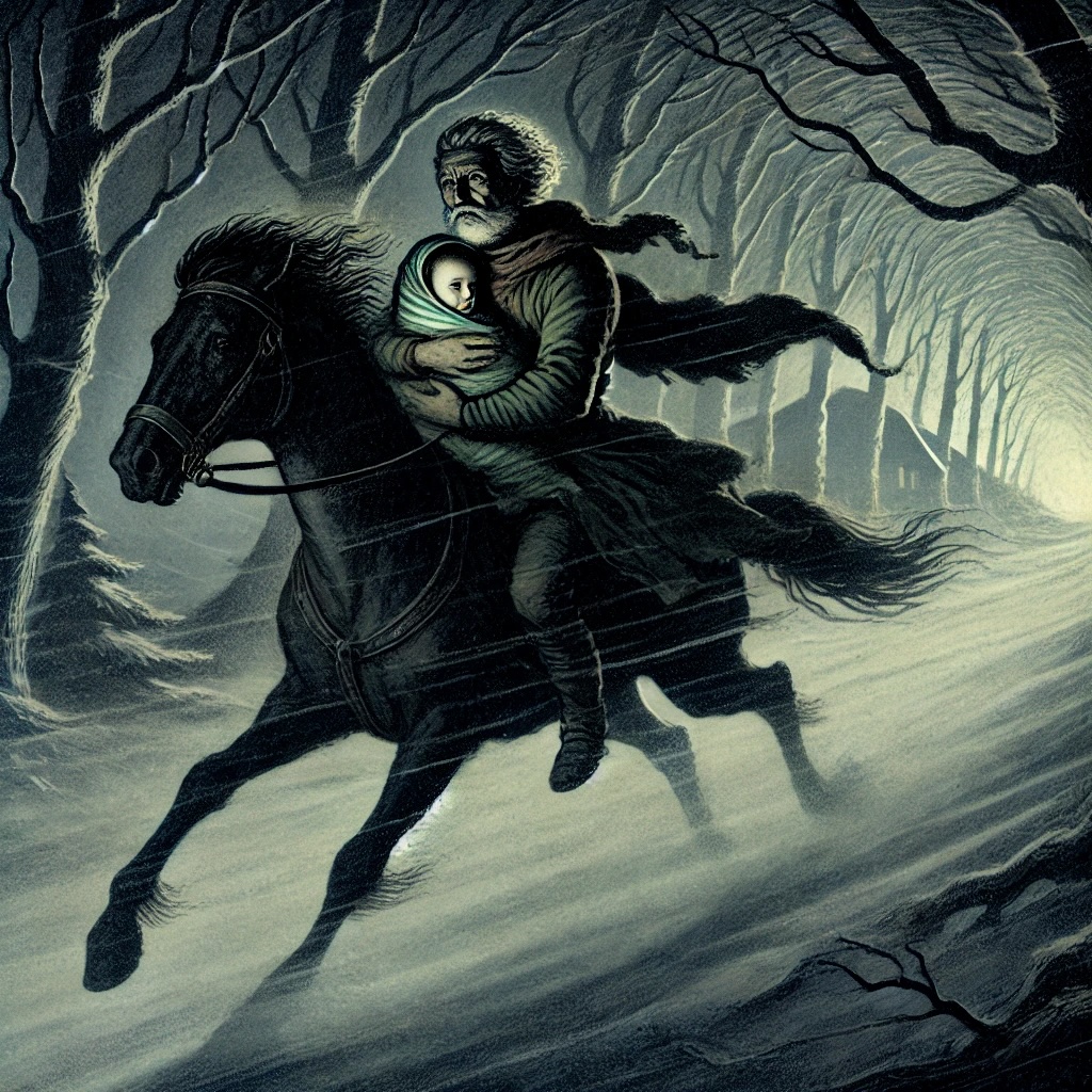 Was den „Erlkönig“ so besonders macht, ist nicht nur die Spannung und düstere Atmosphäre, die Goethe meisterhaft erzeugt, sondern auch die sprachliche Brillanz und die Verwendung eines Dialogs. Das Gedicht wechselt zwischen den Stimmen des Vaters, des Kindes und des Erlkönigs und führt zu einer geradezu dramatischen Intensität, die sich auch heute noch lebendig anfühlt. Der Wechsel zwischen den Perspektiven verstärkt das Gefühl der Unruhe und Hilflosigkeit, und der wiederkehrende, reimende Rhythmus vermittelt die Dringlichkeit der Situation.